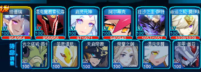 圣灵谱尼,天启帝君,英卡洛斯,阿尔蒂克,莫伊莱,索伦森,坦普瑞,萨特,启灵元神,混元天尊,帝皇之御,圣甲盖亚
